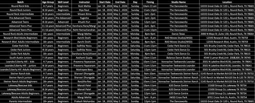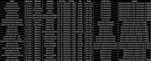 - Costume fees will be collected separately around mid-semester . These costumes are made to measure and yours to keep. Costume designs selections are made by the instructors based on the batch theme selection. More details on the same can be learned in-class.