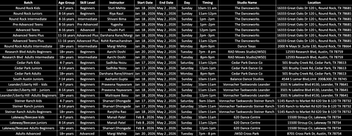 - Costume fees will be collected separately around mid-semester . These costumes are made to measure and yours to keep. Costume designs selections are made by the instructors based on the batch theme selection. More details on the same can be learned in-class.